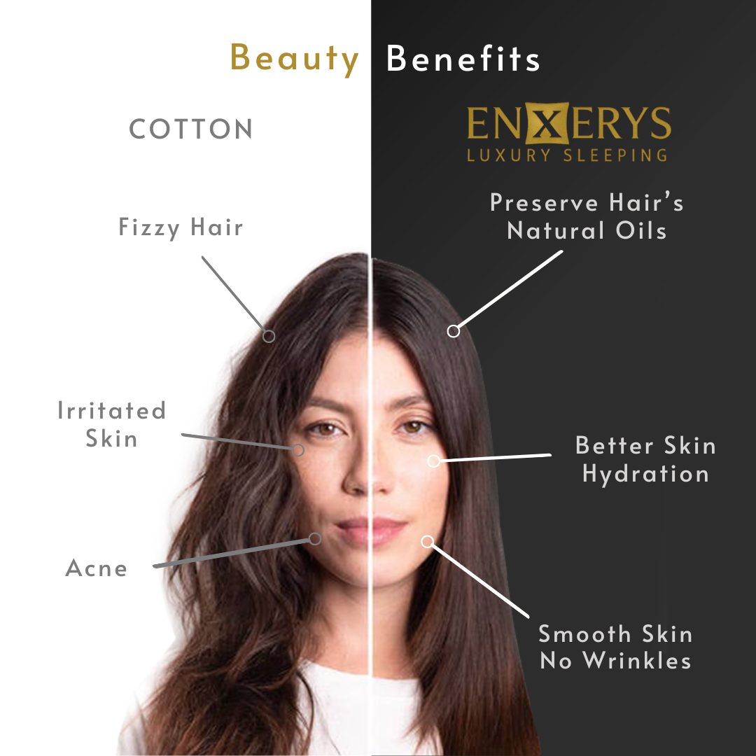 Silk became a luxury simbol for a reason! Mulberry silk - being the highest quality silk possible - provides numerous benenfits when cmopared to cotton.